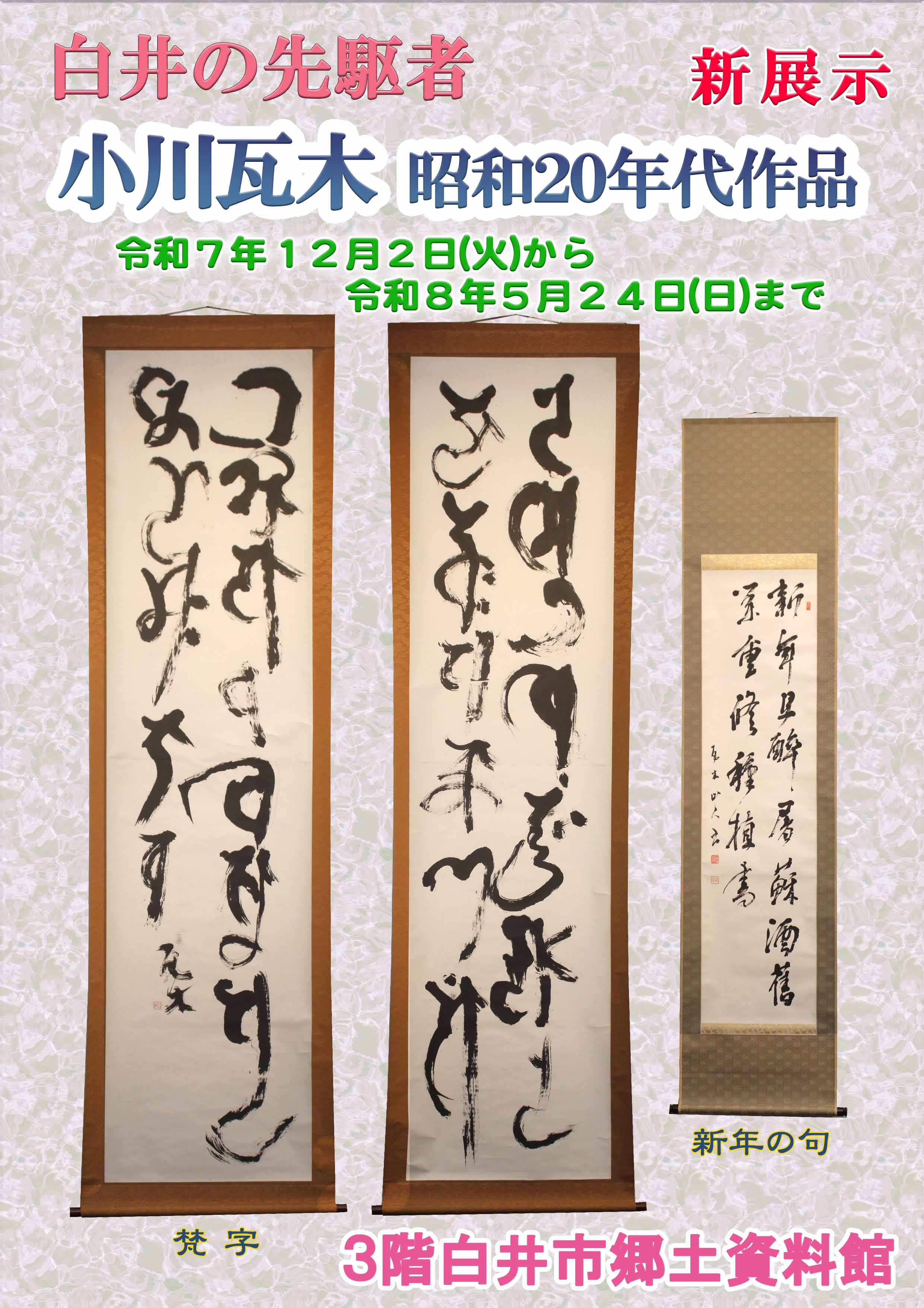 白井市出身の前衛書道家、故小川瓦木氏のご遺族から、新たに作品23点とゆかりの品を令和元年11月に寄贈いただきました。これらの作品とゆかりの品を順次、紹介していきます。(第3回)