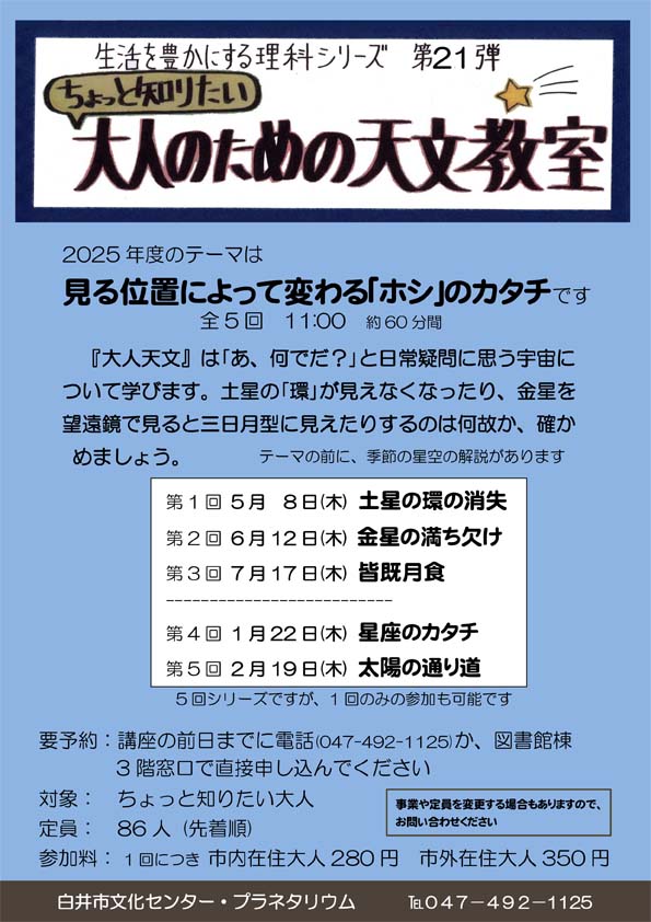 生活を豊かにする理科シリーズ第22弾 ちょっと知りたい大人のための天文教室 2026年度
