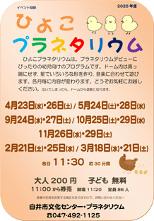 ※2026年2月21日(土曜日)と3月21日(土曜日)は、「ひよこプラネタリウム」になります。
