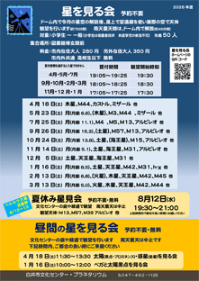 ※雨天や曇天の場合は、ドームの中で約45分間の「星を見る会」向け星空解説を行います。