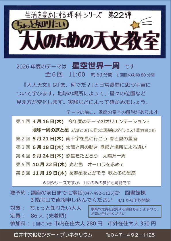 生活を豊かにする理科シリーズ第22弾 ちょっと知りたい大人のための天文教室 2026年度